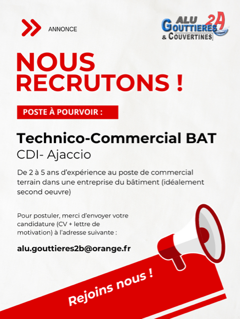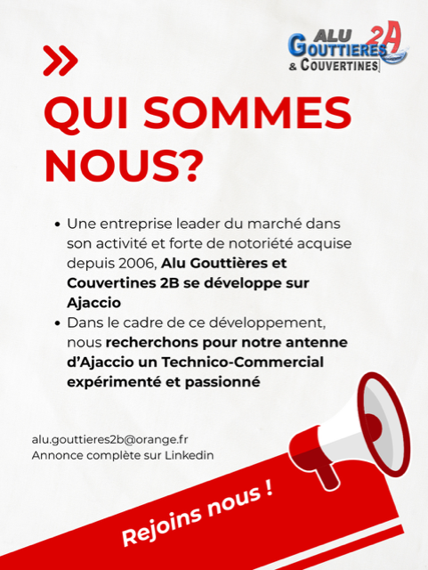 Dans le cadre de notre développement permanent sur la région haute-corse nous sommes à la recherche d’un poseur de gouttière pour notre antenne d’Ajaccio. Expérience dans le bâtiment exigée. Motivé, volontaire et ponctuel sont les maîtres mots. CDI à temps plein, travail 5 jours par semaine. Salaire motivant.