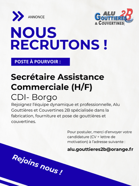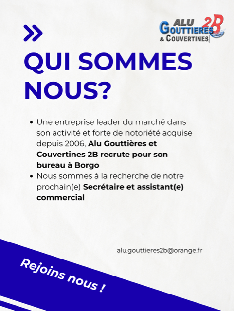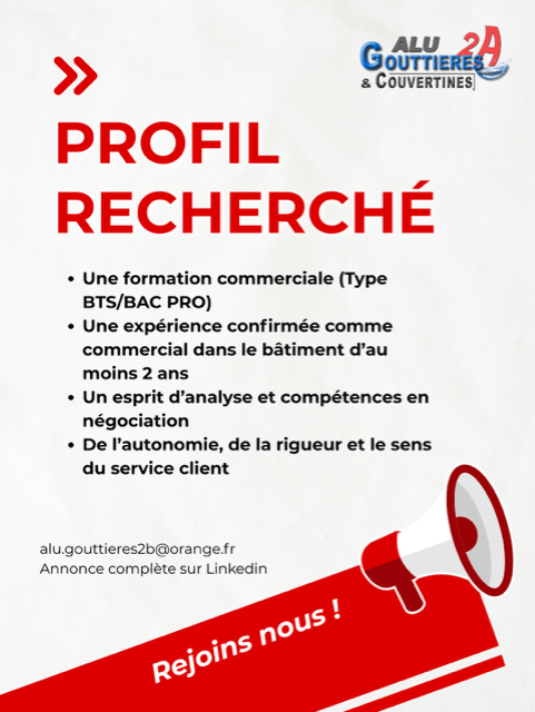 Dans le cadre de notre développement permanent sur la région haute-corse nous sommes à la recherche d’un poseur de gouttière pour notre antenne de Bastia. Expérience dans le bâtiment exigée. Motivé, volontaire et ponctuel sont les maîtres mots. CDI à temps plein, travail 5 jours par semaine. Salaire motivant.